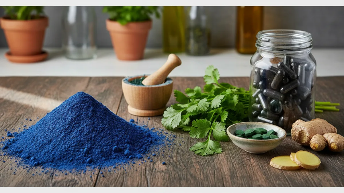 La ficocianina es el pigmento azul de la espirulina con capacidad demostrada para quelar metales pesados (plomo, cadmio, arsénico) y neutralizar peroxinitrito. La dosis efectiva parte de 2-3 g/día de espirulina de calidad certificada, pero es imprescindible verificar que la propia espirulina no esté contaminada con los mismos metales que promete eliminar.