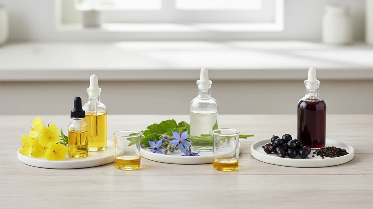Si buscas suplementar ácido gamma-linolénico (GLA), encontrarás tres fuentes vegetales que dominan el mercado: aceite de onagra, aceite de borraja y aceite de semilla de grosella negra. Compré las tres para hacer lo que ningún fabricante quiere que hagas: compararlas con números reales.