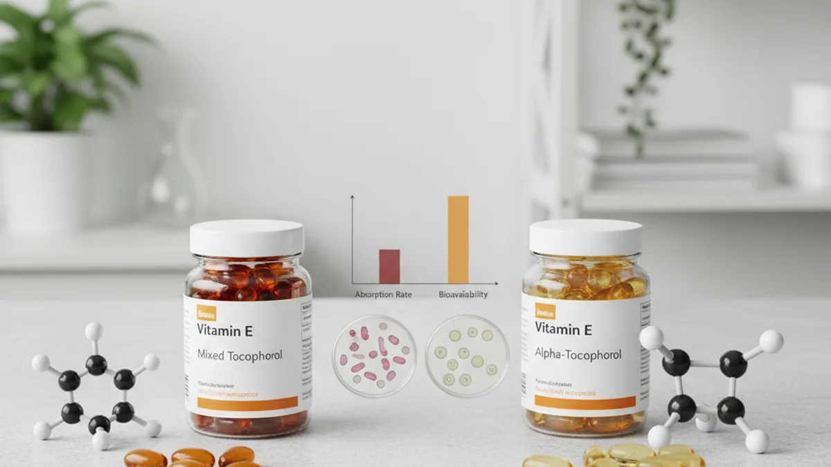 Huye de las etiquetas que solo dicen "Vitamina E 400 UI" sin desglosar las formas. También huye de "d-alfa tocoferol con tocoferoles mixtos" cuando no especifica las cantidades de cada forma (suele ser mayormente alfa con trazas de los demás).