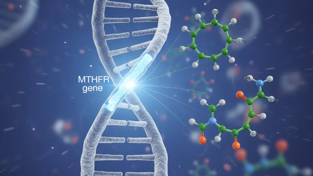 El gen MTHFR (metilentetrahidrofolato reductasa) codifica una enzima fundamental del metabolismo del folato. Esta enzima convierte el 5,10-metilentetrahidrofolato en 5-metiltetrahidrofolato (5-MTHF), la forma biológicamente activa del folato que el cuerpo realmente utiliza1.