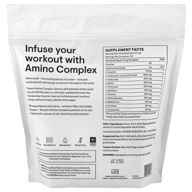 Amino Complex cuenta con la certificación NSF Certified for Sport, lo que garantiza que el producto ha sido sometido a pruebas rigurosas de terceros para verificar la ausencia de sustancias prohibidas por las principales organizaciones deportivas. Esta certificación es especialmente importante para atletas competitivos que están sujetos a controles antidoping y necesitan suplementos en los que puedan confiar plenamente.