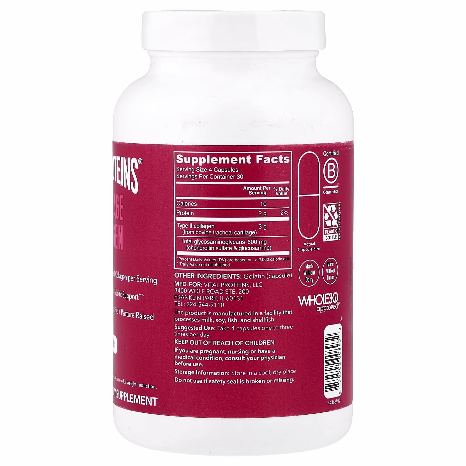 El colágeno de cartílago de Vital Proteins tiene glucosamina y condroitina