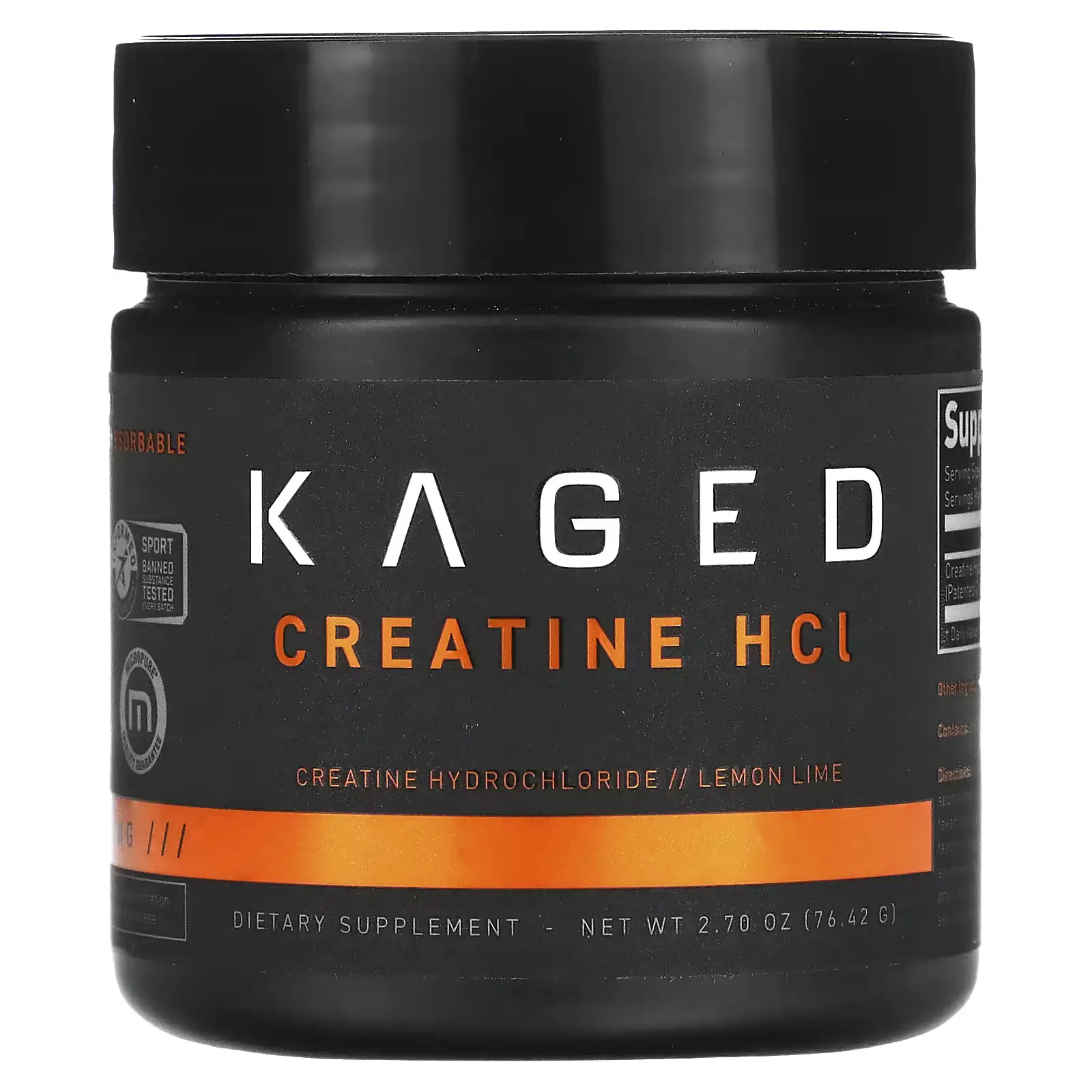 Kaged Creatine HCL® Polvo LEMON LIME (76.42g): ¡Sabor Cítrico Refrescante, Absorción Superior SIN Hinchazón! | Suplenet.com