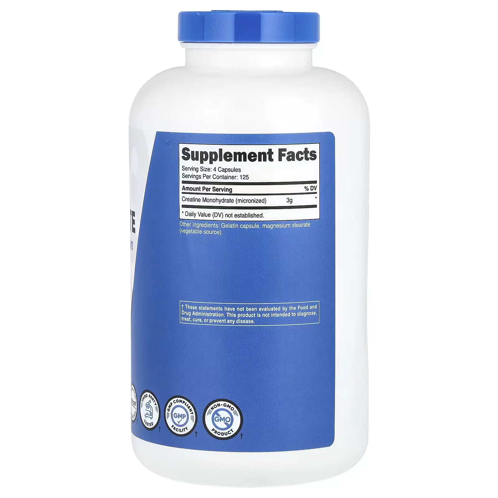 Como suplemento alimentario, tome 4 cápsulas (equivalente a 3 g de monohidrato de creatina) por día con 8-12 oz (240-360 ml) de agua, o según las indicaciones de un profesional de la salud. Puede tomar las cápsulas juntas o divididas a lo largo del día. Consumir diariamente para mantener la saturación muscular.