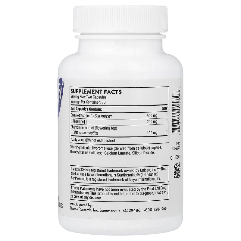 Thorne produce Deep Sleep Complex en instalaciones certificadas en Estados Unidos bajo estrictos controles de calidad. La fórmula es libre de gluten y no contiene melatonina. No está recomendada para mujeres embarazadas o en período de lactancia. Se recomienda tomar 2 cápsulas 60 minutos antes de acostarse para permitir que los extractos botánicos alcancen su efecto óptimo y faciliten una transición natural hacia el sueño.