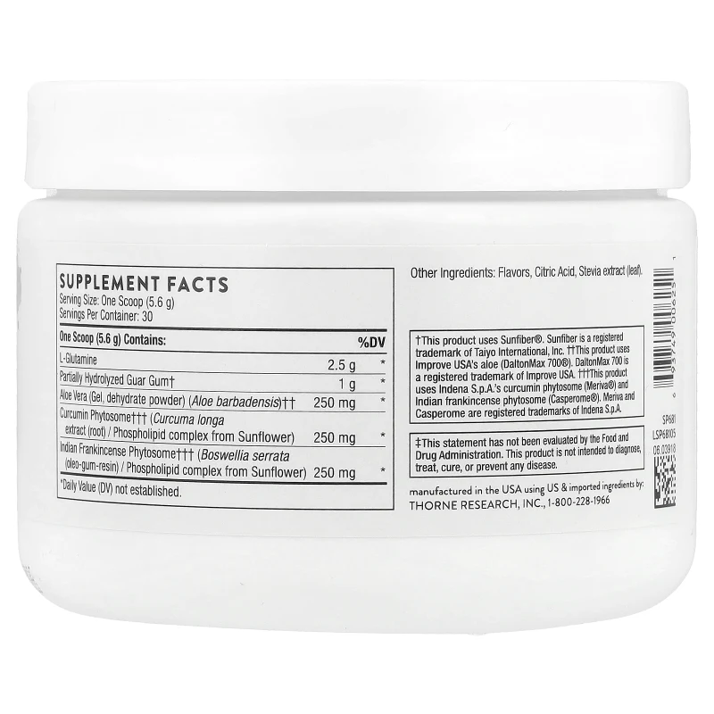 EnteroMend de Thorne es una fórmula exclusiva en polvo que combina aminoácidos y extractos botánicos para ayudar a mantener un tracto intestinal saludable. Diseñado para calmar las membranas mucosas del tracto gastrointestinal, apoyar una respuesta inflamatoria saludable y promover la salud colónica, este suplemento es una herramienta fundamental para quienes buscan restaurar y mantener la integridad de la barrera intestinal.