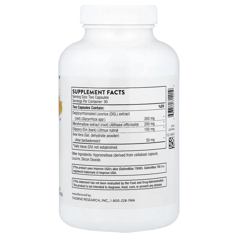 Aloe vera, olmo resbaladizo (Ulmus rubra), raíz de malvavisco (Althaea officinalis) y regaliz desglicirrizinado (DGL)