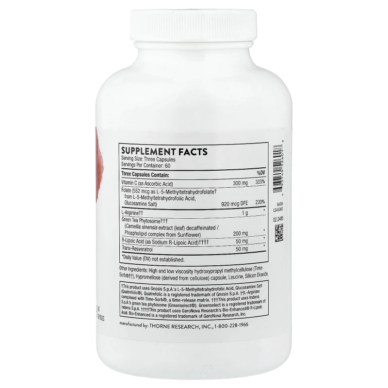 L-Arginina Plus Thorne: Circulación Avanzada con Protección Antioxidante