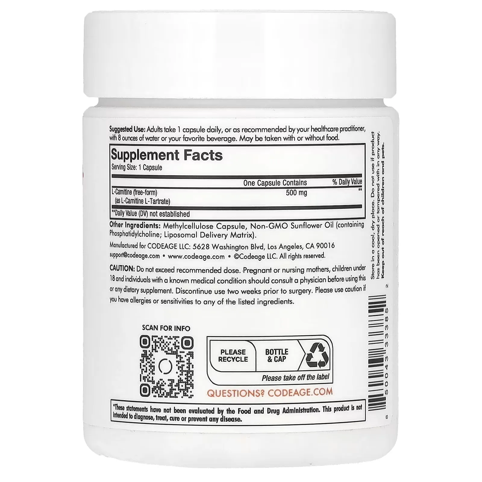 L-carnitina Liposomal, 500 mg, 90 cápsulas, Codeage