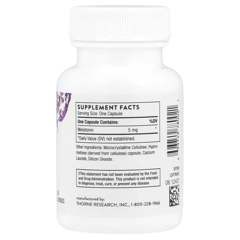 Thorne ofrece melatonina de grado farmacéutico, libre de contaminantes y aditivos innecesarios. La cápsula vegetal de hipromelosa y la formulación mínima reflejan el compromiso de Thorne con la pureza. A diferencia de muchos suplementos de melatonina del mercado que pueden contener cantidades variables de hormona activa, Thorne garantiza la precisión en la dosificación.