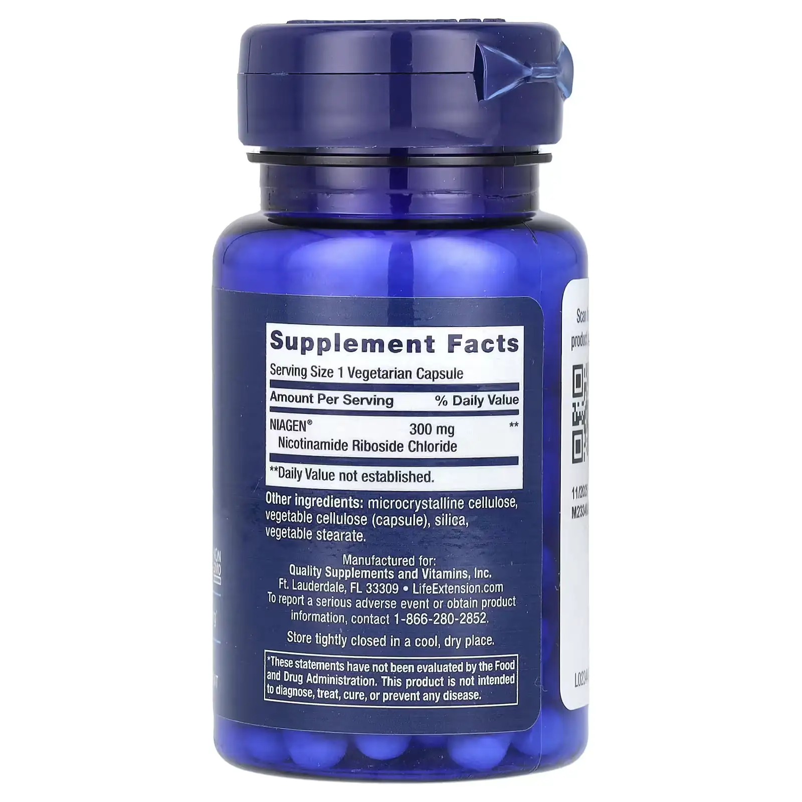 NIAGEN® es el precursor de NAD+ patentado y más eficiente, capaz de aumentar los niveles de NAD+ de forma segura y demostrada, y esta dosis de 300mg busca maximizar ese efecto.
