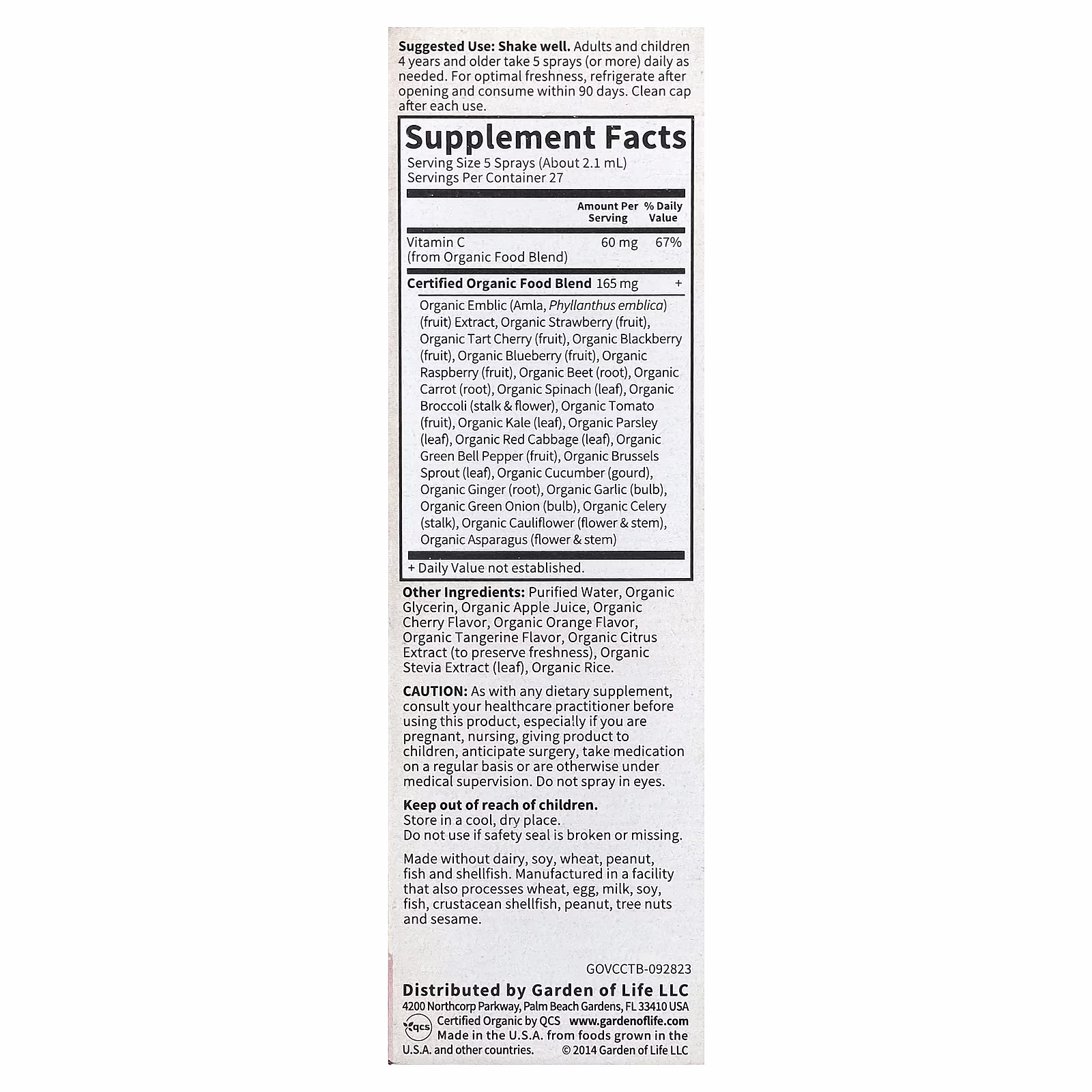 Organics, Spray orgánico con vitamina C, Cereza y mandarina, 58 ml (2 oz. líq.), Garden of Life
