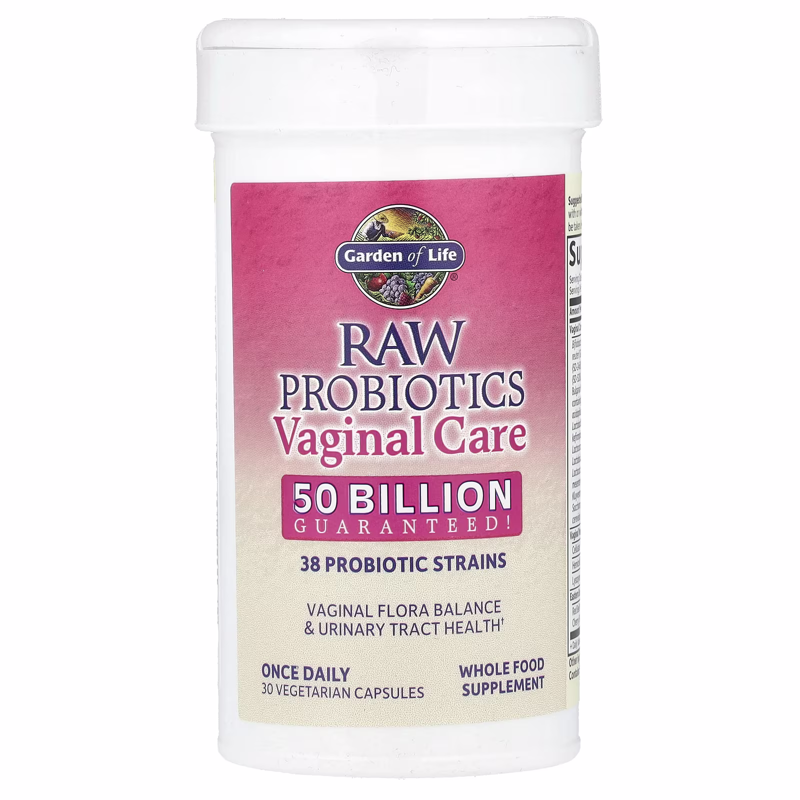 RAW Probiotics, Suplemento para el cuidado vaginal, Estable a temperatura ambiente, 30 cápsulas vegetales, Garden of Life
