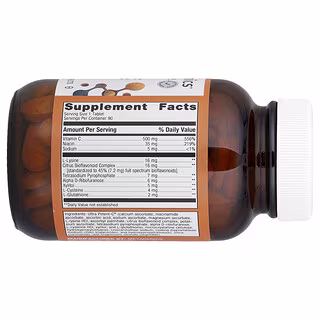 Al igual que la versión 1000, cada tableta de Ultra Potent-C® 500 aporta L-lisina (16 mg), bioflavonoides cítricos (16 mg, 45% bioflavonoides totales), L-cisteína (4 mg) y L-glutatión (2 mg) para el soporte completo de la síntesis de colágeno y el sistema antioxidante.