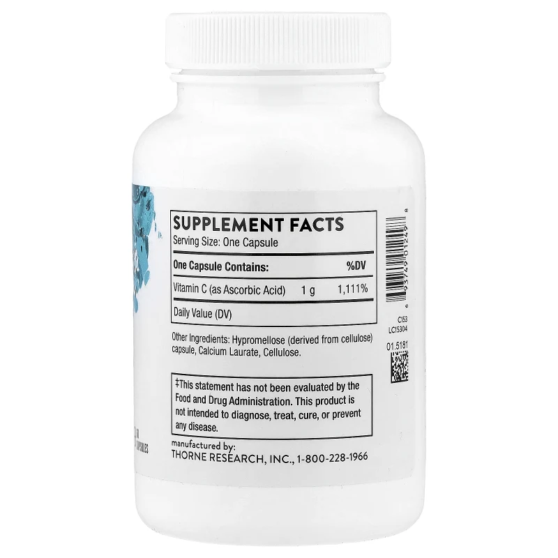 Vitamina C (Ácido Ascórbico), 1000 mg, 60 Cápsulas, Thorne