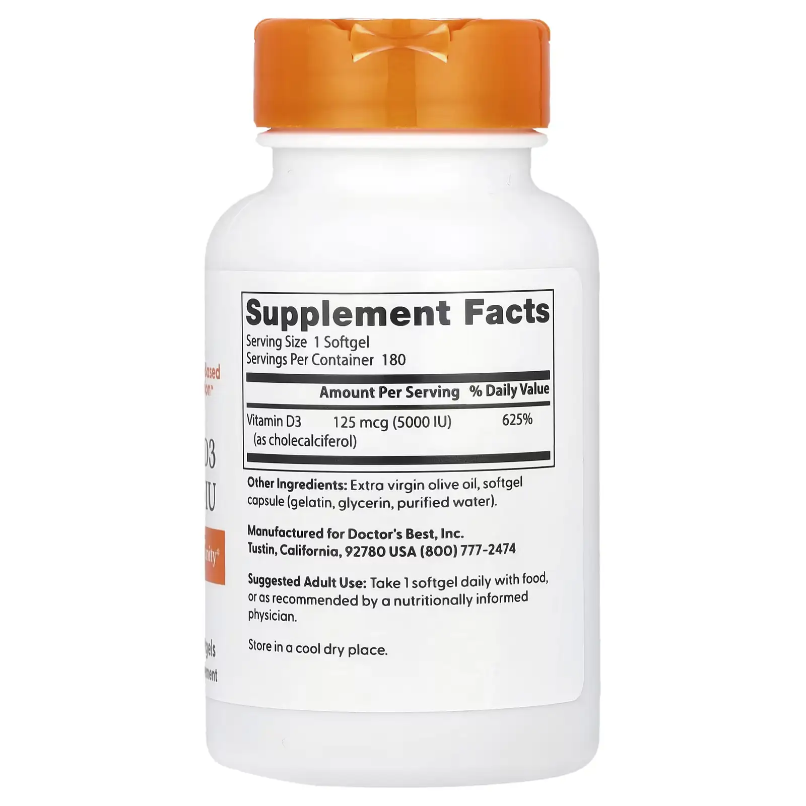 Alcanza niveles óptimos de la “vitamina del sol” con la fórmula de MÁXIMA POTENCIA: Vitamina D3 5000 UI (125 mcg) de Doctor’s Best. Disponible en Suplenet, este envase de 180 cápsulas blandas (suministro para 6 meses) entrega una dosis terapéutica de Vitamina D3 (Colecalciferol) de alta calidad, diseñada para quienes necesitan un apoyo intensivo y rápido para corregir deficiencias significativas y potenciar al máximo la salud ósea, la respuesta inmunitaria, la función cardiovascular y la salud celular general. Con la filosofía “Science-Based Nutrition™” de Doctor’s Best y una fórmula Non-GMO, Sin Gluten y Sin Soya, esta es la elección definitiva para una suplementación de Vitamina D3 de alta dosis, siempre bajo la guía de un profesional de la salud.