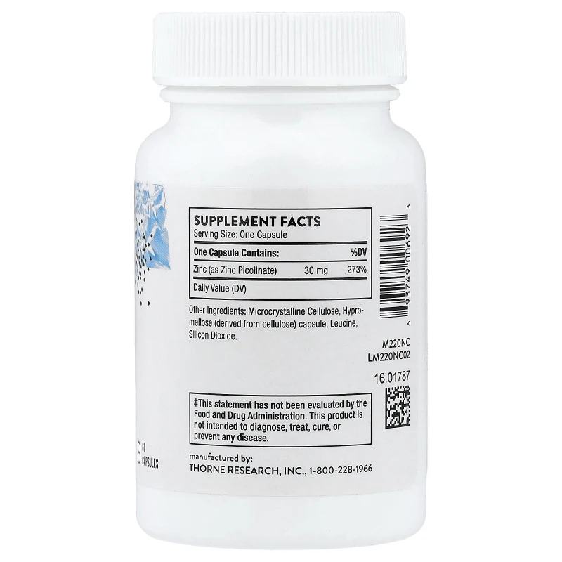 Zinc Picolinato Thorne 30 mg: Dosis Terapeutica para Necesidades Elevadas